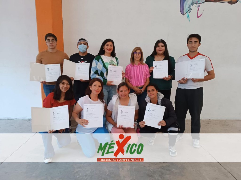 Evaluación práctica de la instructora Lourdes Sánchez en la certificación Activación Física a Través del Baile Aeróbico para Jóvenes y Adultos Mayores en Espacios Abiertos y Cerrados.